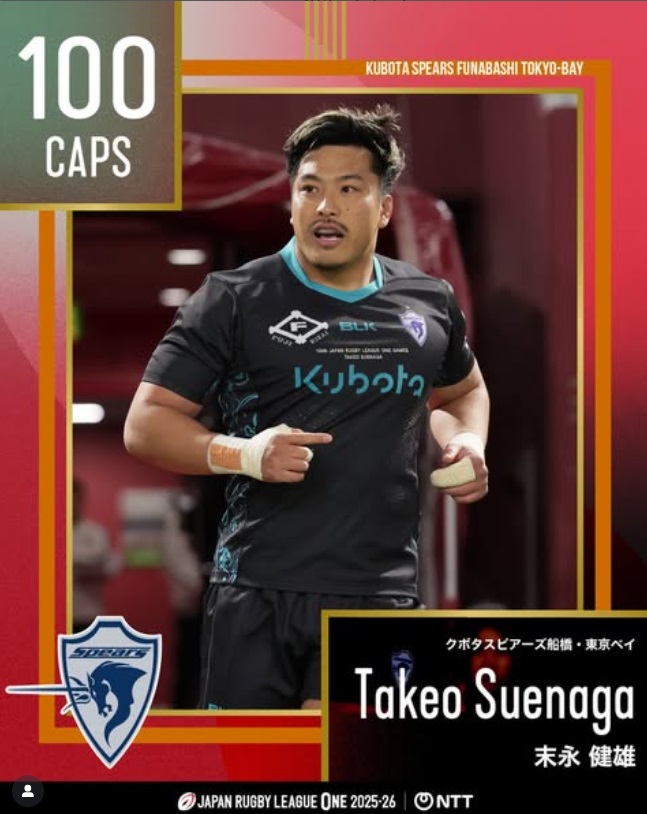 高65回末永健雄選手(クボタスピアーズ船橋・東京ベイ)が通算100CAPを達成! 投稿者: MoriHidetoshi2025年12月14日2025年12月14日お知らせ ©JAPAN RUGBY LEAGUE ONE クボタスピアーズ船橋・東京ベイ 末永 健雄選手(高65回)が、本日12月13日(土)に行われた、第1節対コベルコ神戸スティーラーズ戦の出場で、トップリーグと #リーグワン 通算で100CAPを達成しました! leagueone_offcial 公式Instagram(外部サイト)
