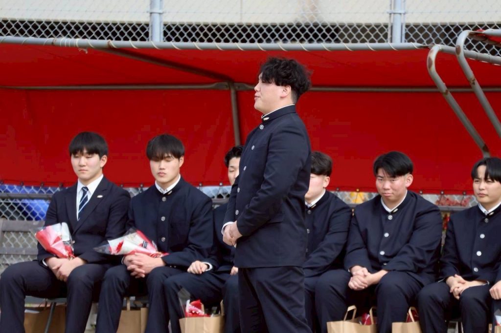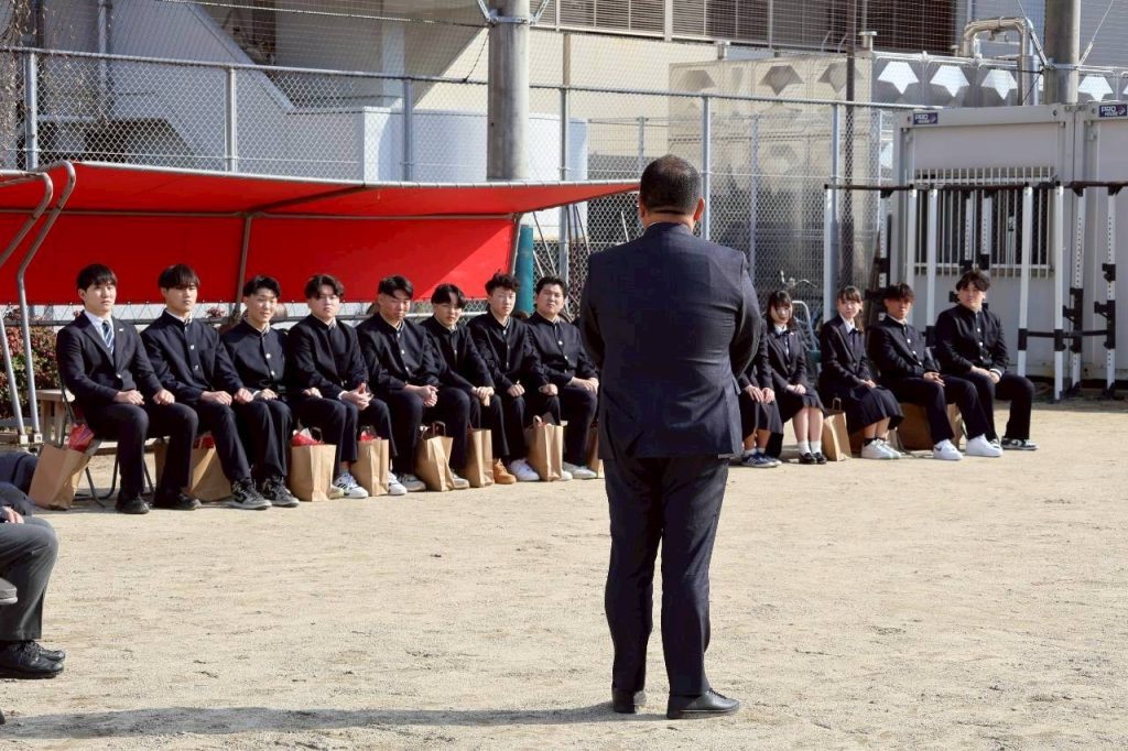 高78回生卒部式を行いました 投稿者: MoriHidetoshi2026年3月4日2026年3月4日お知らせ 去る3月1日 福岡高校卒業式が行われ、高校78回生が卒業しました 卒業式後は千代グランドにて 以下の次第で卒部式を開催しました 式次第 1.はじめの言葉2. 記念品贈呈3. 卒部生挨拶4. 在校生代表挨拶 (挾間勘介)5. 顧問の先生方より(1) 中富先生(2) 杉山先生(3) 深田先生(4) 原先生6.部歌斉唱(全員起立)7. 終わりの言葉 仲間たちとの想い出を胸に それぞれの道にすすむ78回生の皆様、ご卒業おめでとうございます!